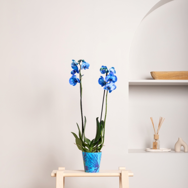 Plava orhideja Phalaenopsis je prava egzotična lepotica! Njeni raskošni cvetovi u neobičnoj plavoj nijansi unose luksuz i eleganciju u svaki dom. Lako se održava, voli svetlo bez direktnog sunca i povremeno zalivanje. Savršena je kao dekoracija ili poseban poklon.